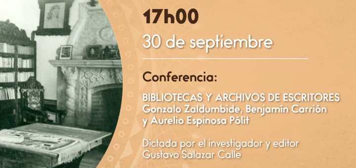 El Centro Cultural Benjamín Carrión invita a la comunidad a la conferencia «Bibliotecas y archivos de escritores», el jueves 30 de septiembre de 2021, a las 17h00.