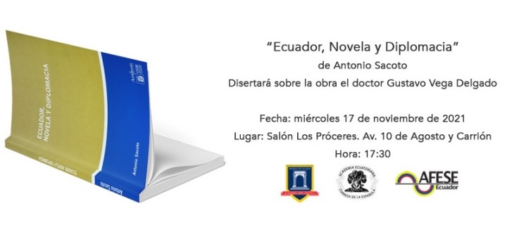 El 17 de noviembre, a las 17h00, se presentará el libro «Ecuador, novela y diplomacia» de don Antonio Sacoto. El evento tendrá carácter semipresencial, en la Cancillería o vía Zoom.