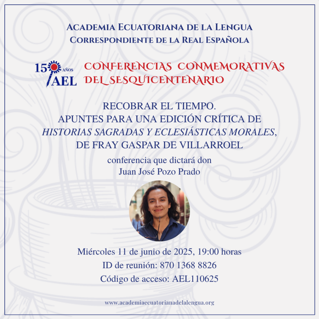 La Academia Ecuatoriana de la Lengua se complace en presentar sus conferencias conmemorativas del sesquicentenario, que se llevarán a cabo durante este año.