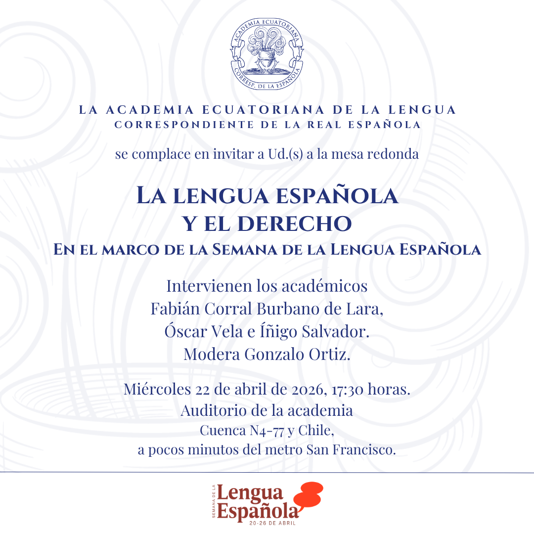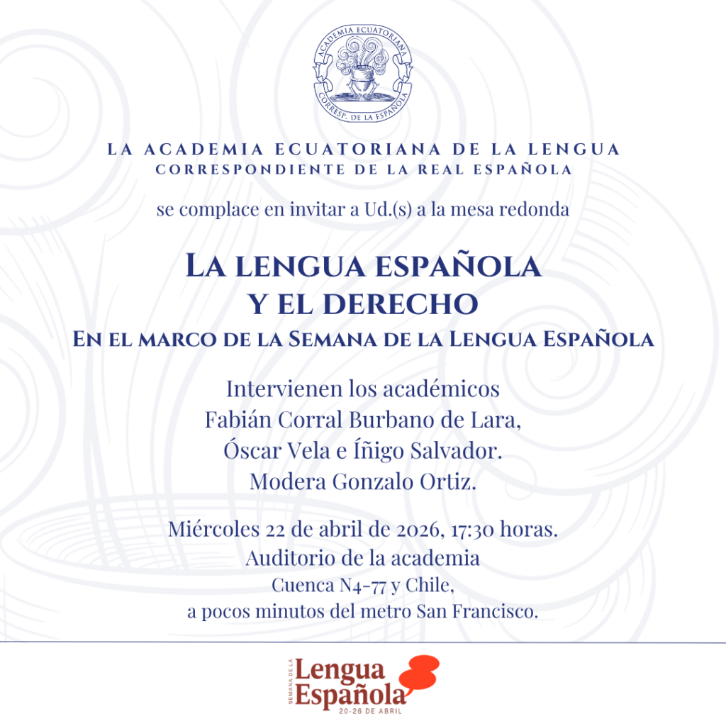 La Academia Ecuatoriana de la Lengua participará en la Semana de la Lengua Española, que se celebrará entre el 20 y el 26 de abril de 2026. A continuación un detalle de las actividades preparadas: